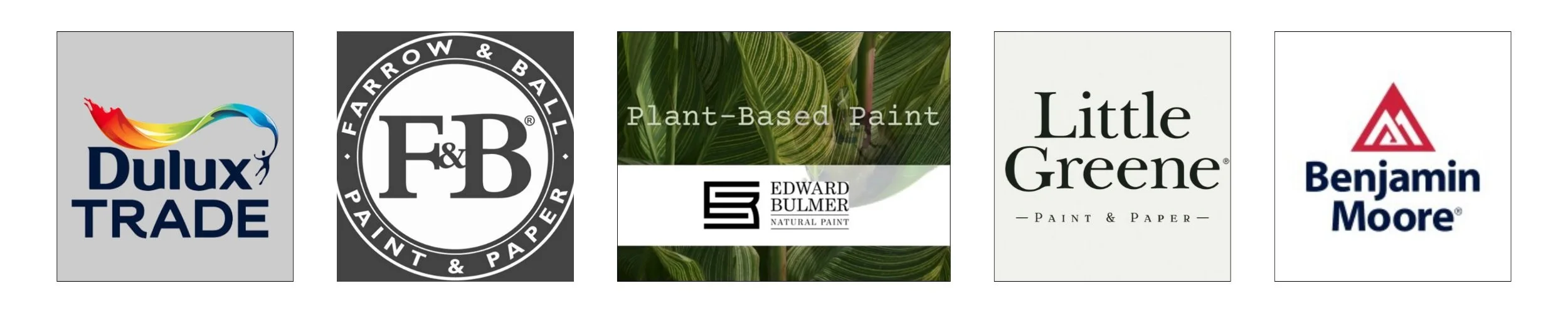 We work with only top quality branded paints, working with the Dulux trade and Heritage range, Farrow and Ball, Little Greene, Edward Bulmer and Benjamin Moore paints.